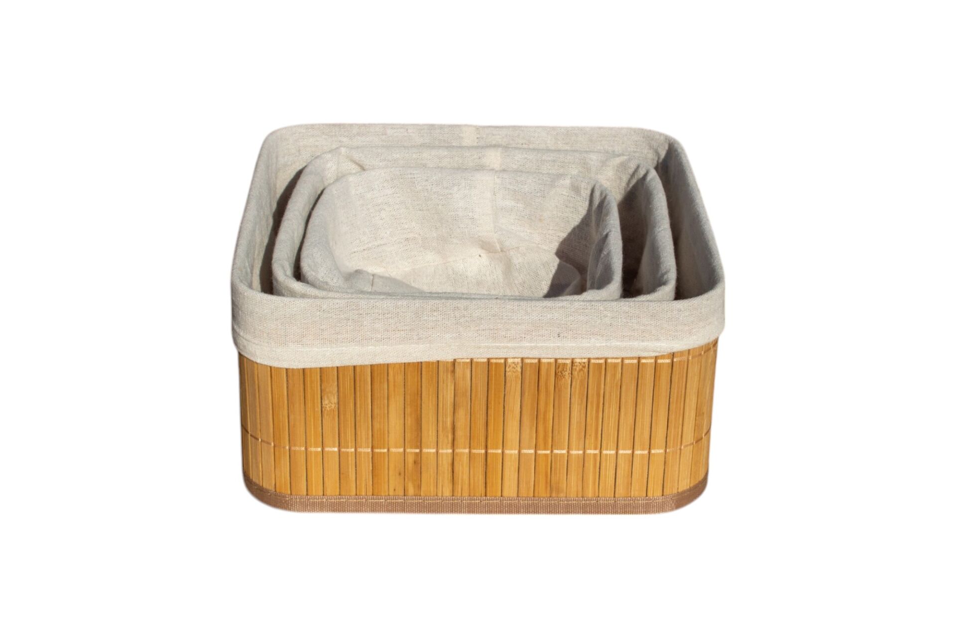 Zeytun Bambu Kare Organizer Sepet 3 Lü Sepet Takımı
